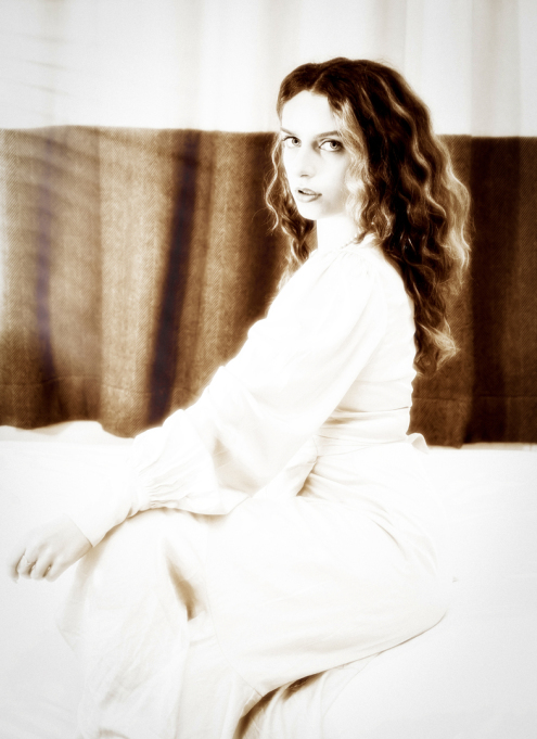 the late summer of 1919. Her private en suite dissolves into a brilliant, dreamlike glow, the rooms contours melting into a soft, luminous haze and fine film grain. This atmosphere lends her presence