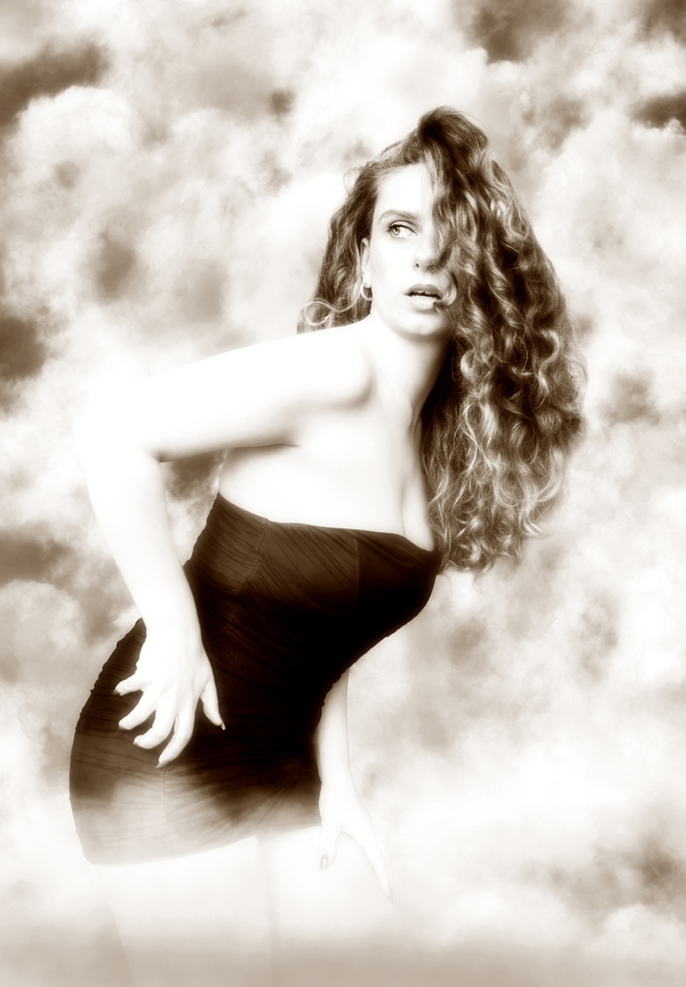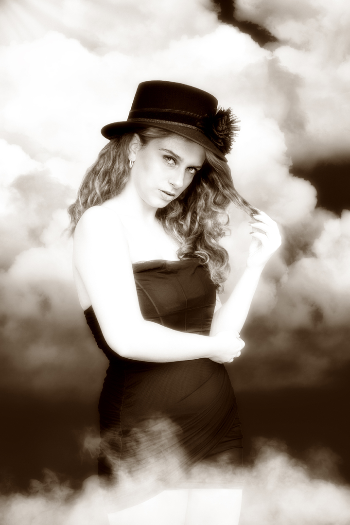 likeness with the understated elegance of early twentieth century vintage photography. The enveloping clouds and drifting smoke echo the soft focus aesthetic favoured by artists of the 1910s, a